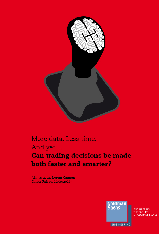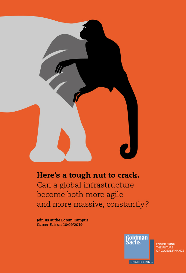 Le Groupe Goldman Sachs leader se trouvait en difficulté pour recruter de nouveaux ingénieurs. Ces derniers étants naturellement plus attirés par les entreprises stars de la Silicon Valley. La cible de cette campagne étant des jeunes gens aimants résoudre des problèmes technologiques de haut niveau, il fallait créer des visuels capables de les stimuler. L’agence TBWA a fait appel au studio Off pour concevoir ces énigmes visuelles illustrant les immenses défis que le monde de la finance doit relever.